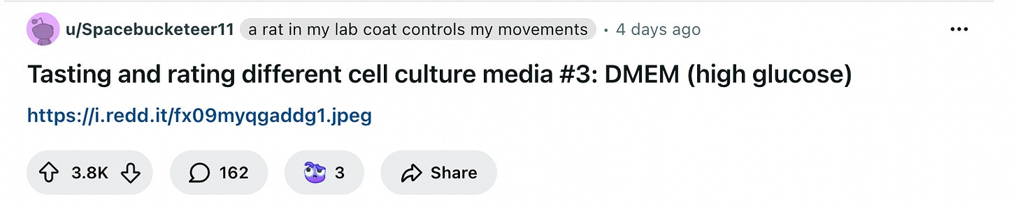 Despite how horrible the experience was, I cannot in good conscience equate it to True wet lab work, since my experience taught me none of the lingo regularly employed on the r/labrats subreddit.